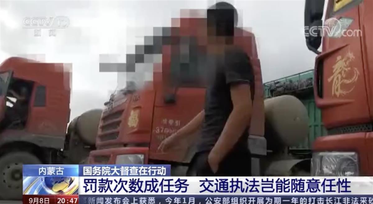 近日,国务院督查组在内蒙古自治区暗访时发现,部分交警为完成罚款任务,对过往货车司机随意罚款。9月10日,内蒙古相关地区的部分交管部门行业人员已经被停职。