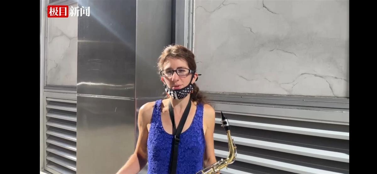 现场还有一位年轻的女性吹起了萨克斯,她告诉极目新闻,和那位72岁的老人一样,起先她也以为是一场意外,直到第二架飞机在电视画面上出现,她的妈妈才十分肯定地说“这绝不是意外”。她来到纪念活动现场是为了那些参加过战争的美国老兵募捐,希望能帮助这些为国家付出生命的人。
