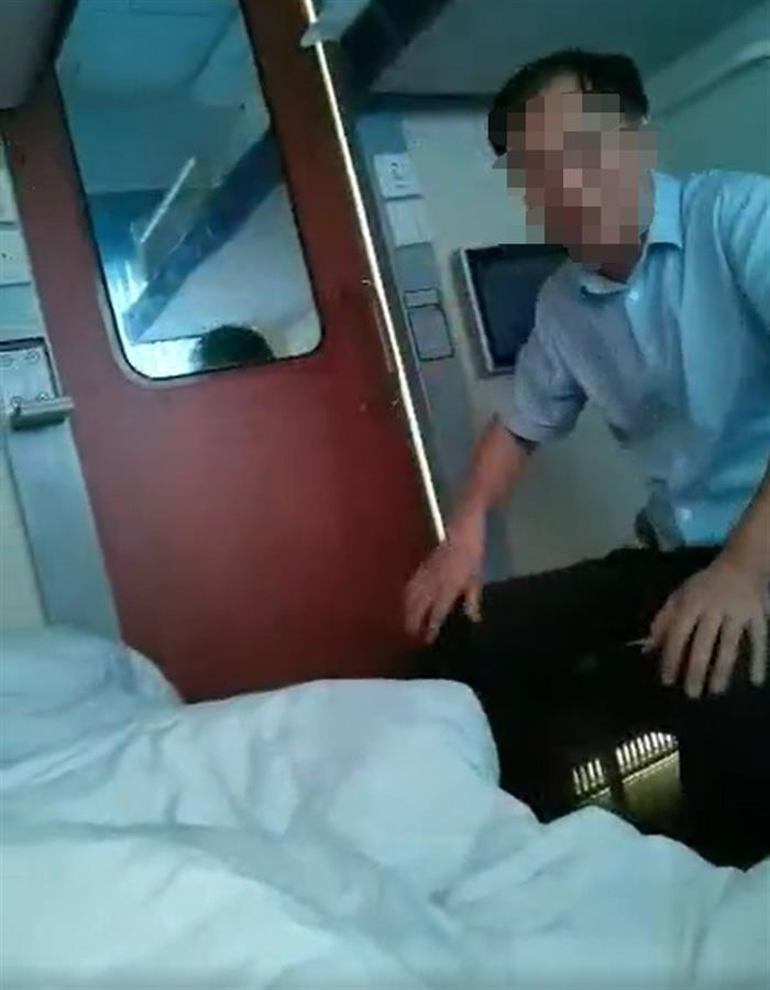据刘女士介绍,这名黄衣男子是该中年男子的朋友,和她在一个卧铺包间。此事发生后,有乘务人员在刘女士的包间门口值守,中年男子便没有再骚扰他,黄衣男子也在卧铺休息。但她快要下车时又见到这个中年男子,依旧在对她指指点点。