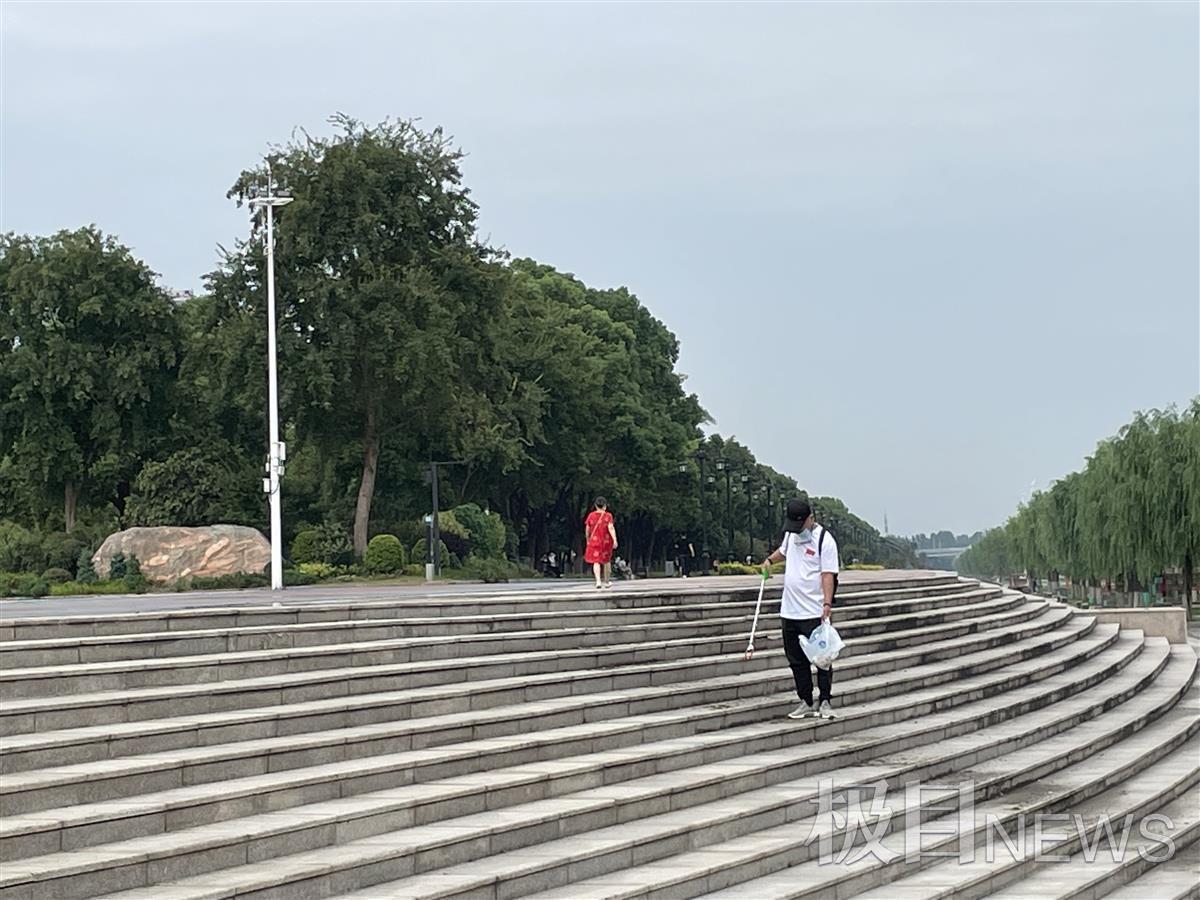 9月12日,武汉汉口江滩,一位志愿者默默捡起地上的垃圾。这位不愿透露姓名的志愿者告诉极目新闻记者:“丢垃圾的人越来越少,每个人的奉献只为江滩更美丽。”