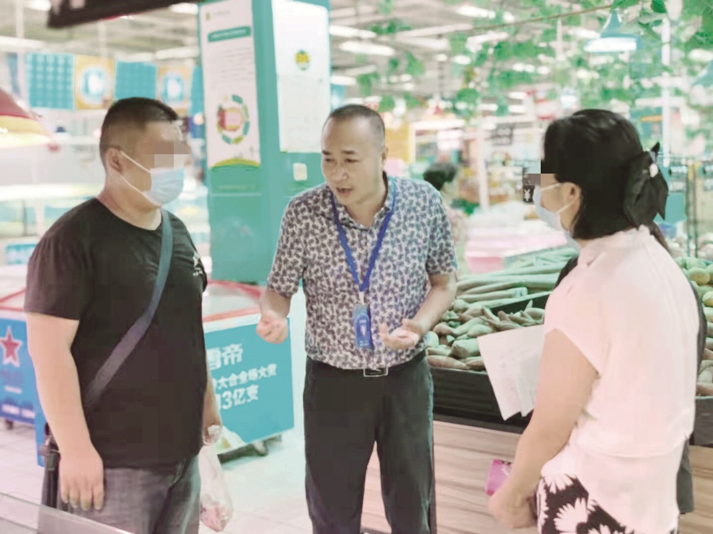 王华(中)在超市对双方进行调解