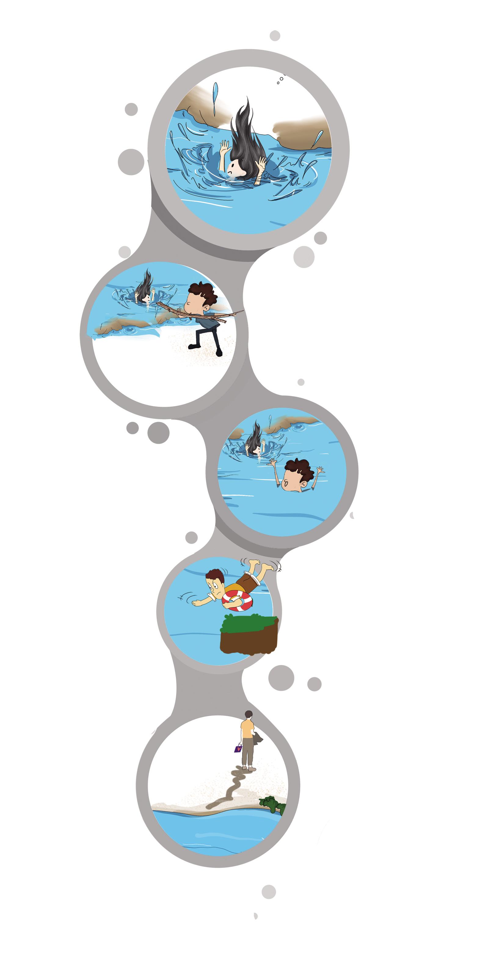 “这根木条有3米多长,再加上我的手臂,总共才4米长,根本够不到她。”看到手中木条无法救人,王雄波也无能为力,“就在这个时候,一阵浪拍打到我脚下的江堤斜坡上,可能是江水把斜坡润湿了,也可能是斜坡上面有青苔,我脚下一滑就掉进了江里。”回忆起自己落水的瞬间,王雄波还有些后怕。