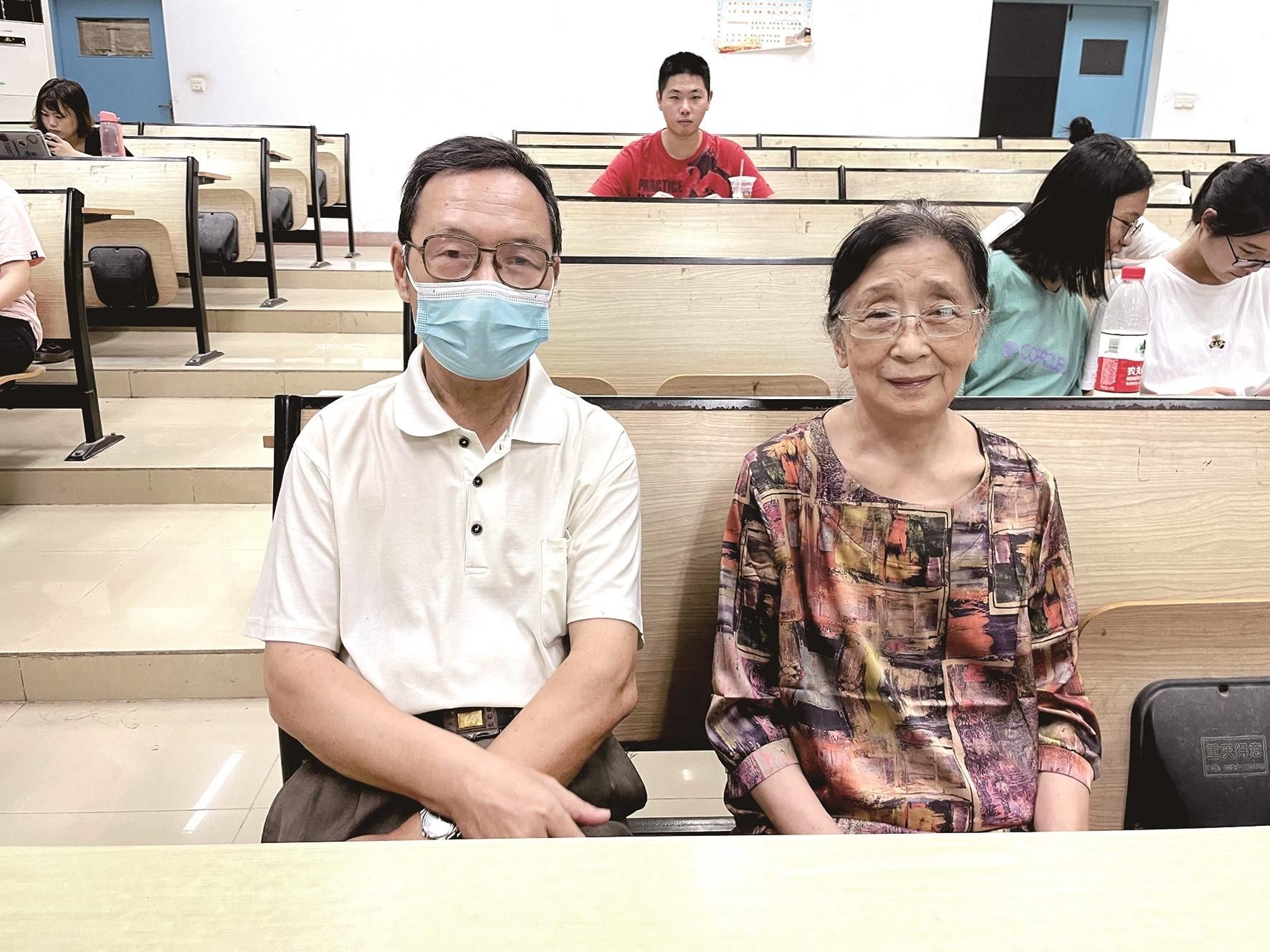 夫妻俩听女儿讲课