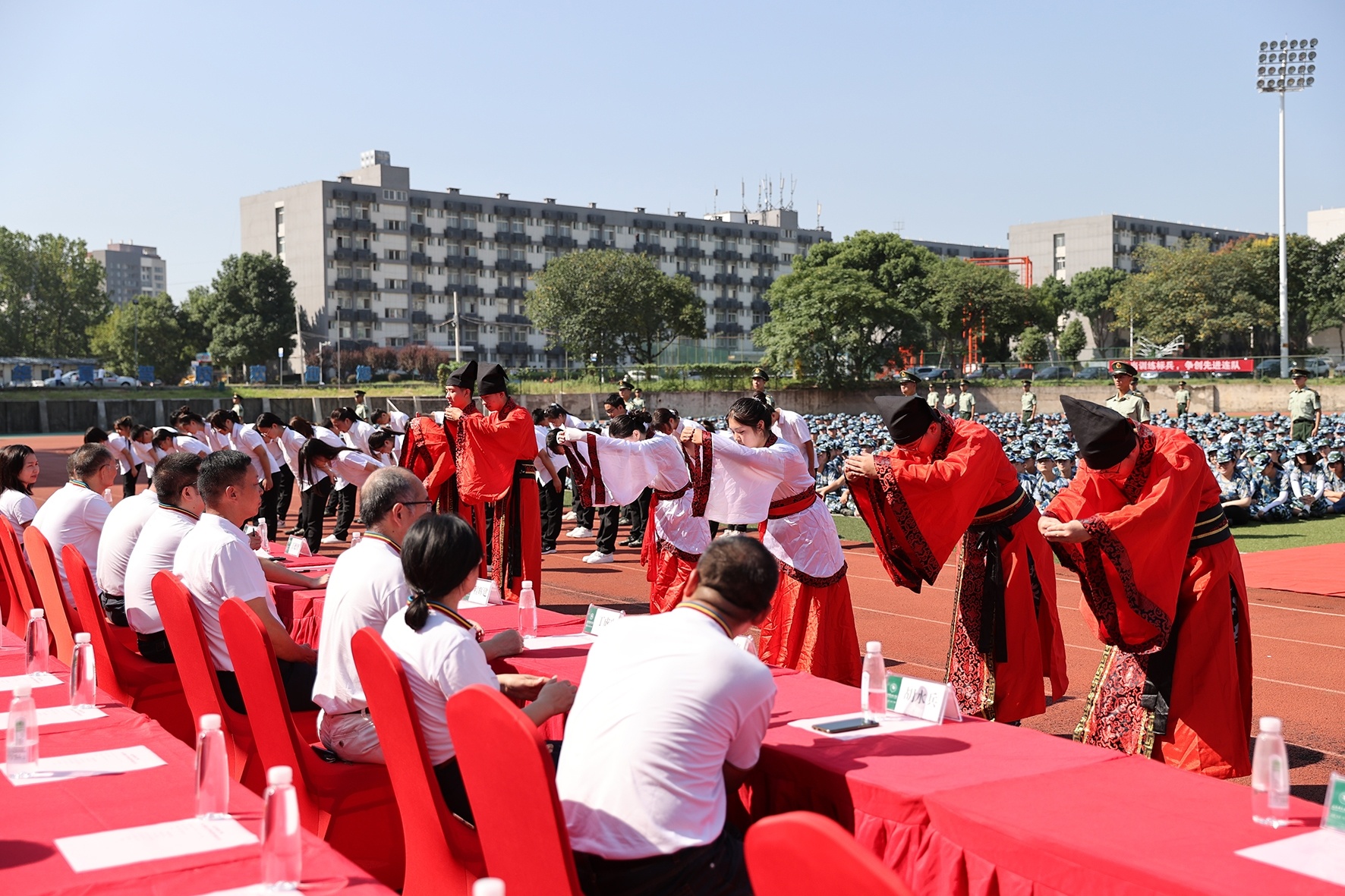 9月13日上午,在武汉华夏理工学院2021级新生开学典礼暨军训动员大会上,80多名9月份过生日的新生代表着统一服装参加成人礼仪式。其中,6位当天满18岁的同学身着中国传统服饰,列队走过成人门,接受学校老师的加冠及笄,并向师生和家长们行感恩礼。