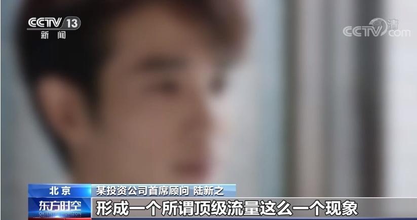 某投资公司首席顾问 陆新之:微博和其他社交平台,短时间内炒作某个艺人,形成一个所谓顶级流量这么一个现象。它和资本运作捆绑在一起,与明星艺人搞一些工作室,工作室还没有什么作品,它就通过所谓的资本市场上的操作,交换、收购股权,虚增溢价,用一个很高额的价格去购买一个明星工作室这种股份,然后又把这个股份又装回上市公司,再找资本市场买单,事实上这个游戏所有的风险都嫁接到资本市场和中小股民身上。