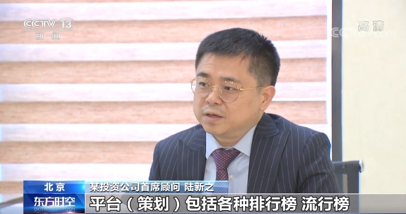 某投资公司首席顾问 陆新之:平台(策划)包括各种排行榜、流行榜,包括各种更过分的什么权利榜,很多话题它也是在引导,制造话题,刺激、包装、打造、配合明星,突人设。平台参与这件事儿,它相当于有了话语权,也能够在里面分一杯羹,而且甚至平台还乐于见到你上面的开撕、打架,“黑粉也是粉”。