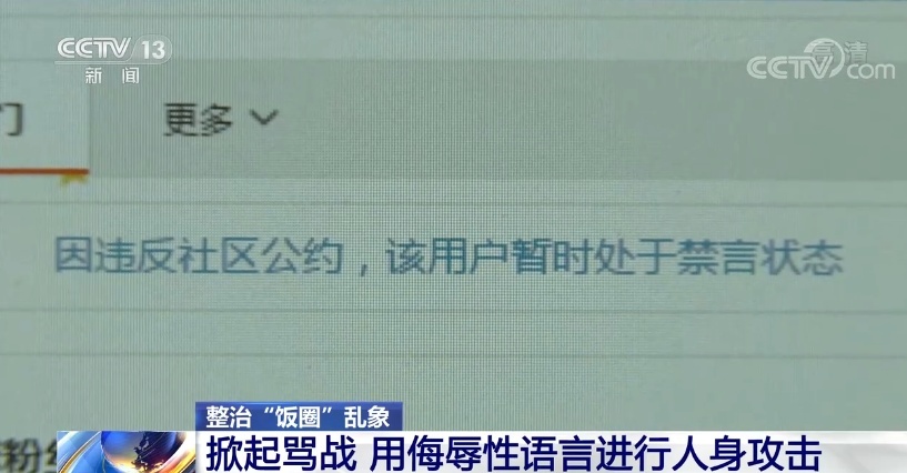 “粉丝”小闫:就比如说我在微博吐槽一件事,我即使没有打明星的大名然后也会被粉丝发现,就是他们会到我的微博底下就骂我什么之类的,比如说会批评某个明星的粉圈,然后这某个明星的粉丝就会集中举报,自己的微博就会被炸号,而且你没有任何解决办法。我觉得这个还是挺让人无语的一件事情吧。