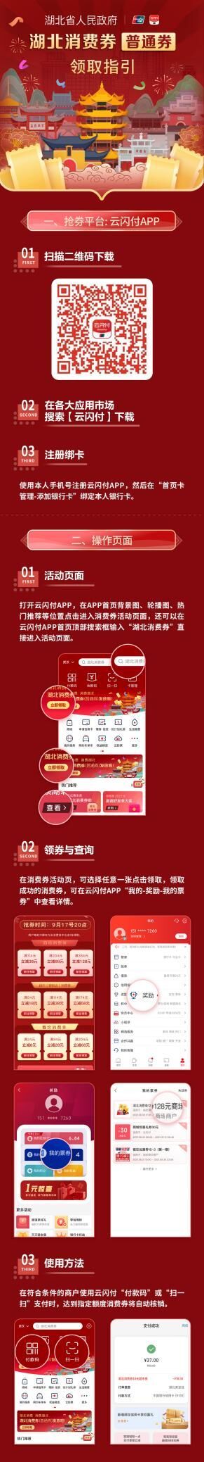(一)活动期间,符合活动参与条件的用户可在手机打开支付宝APP-点击支付宝首页氛围图或搜索“湖北消费券”,即可进入“湖北消费券”会场。每位用户可在会场活动页面上9张消费券(3种不同类别分别有3种不同面额)中自主选择1张点击抢券,先到先得;