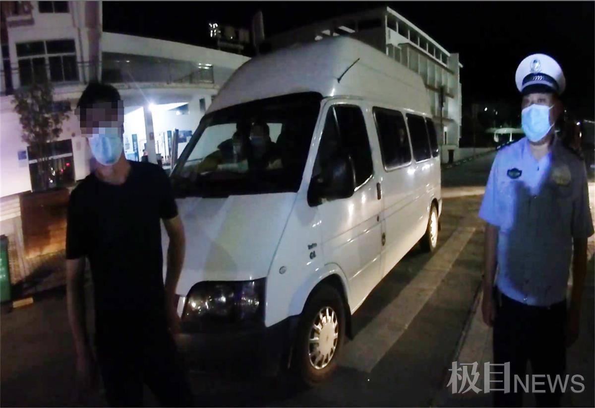 20时43分,目标车辆出现,民警迅速指挥其靠边接受检查。经检查发现,该车核载5人,实载8人,后车厢满载货物,涉嫌超员、客货混装。