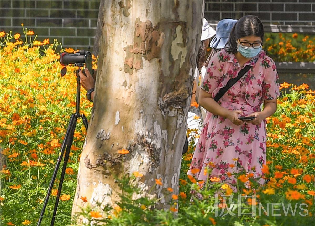 9月14日,在初秋的微风中,华中科技大学东校区,大片硫华菊竞相绽放,喜迎新同学们的到来。