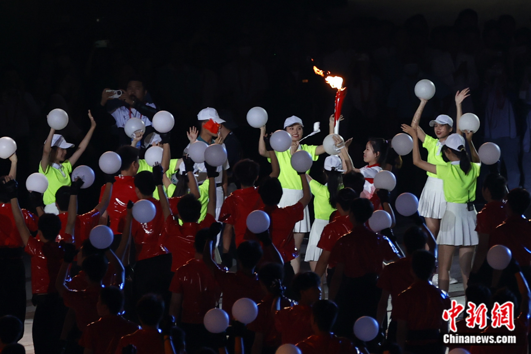 在东京奥运会男子100米半决赛中以9.83秒刷新亚洲纪录的苏炳添担任首棒火炬手,将圣火传递给在东京奥运会中拿下两金两银的游泳运动员张雨霏。