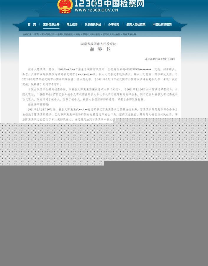 湖南武冈男子陈刚因与村民发生口角后怀恨在心,竟向对方家中泼汽油纵火,所幸未造成人员伤亡。近日,湖南省武冈市人民检察院以故意杀人罪(未遂)对陈刚提起公诉。