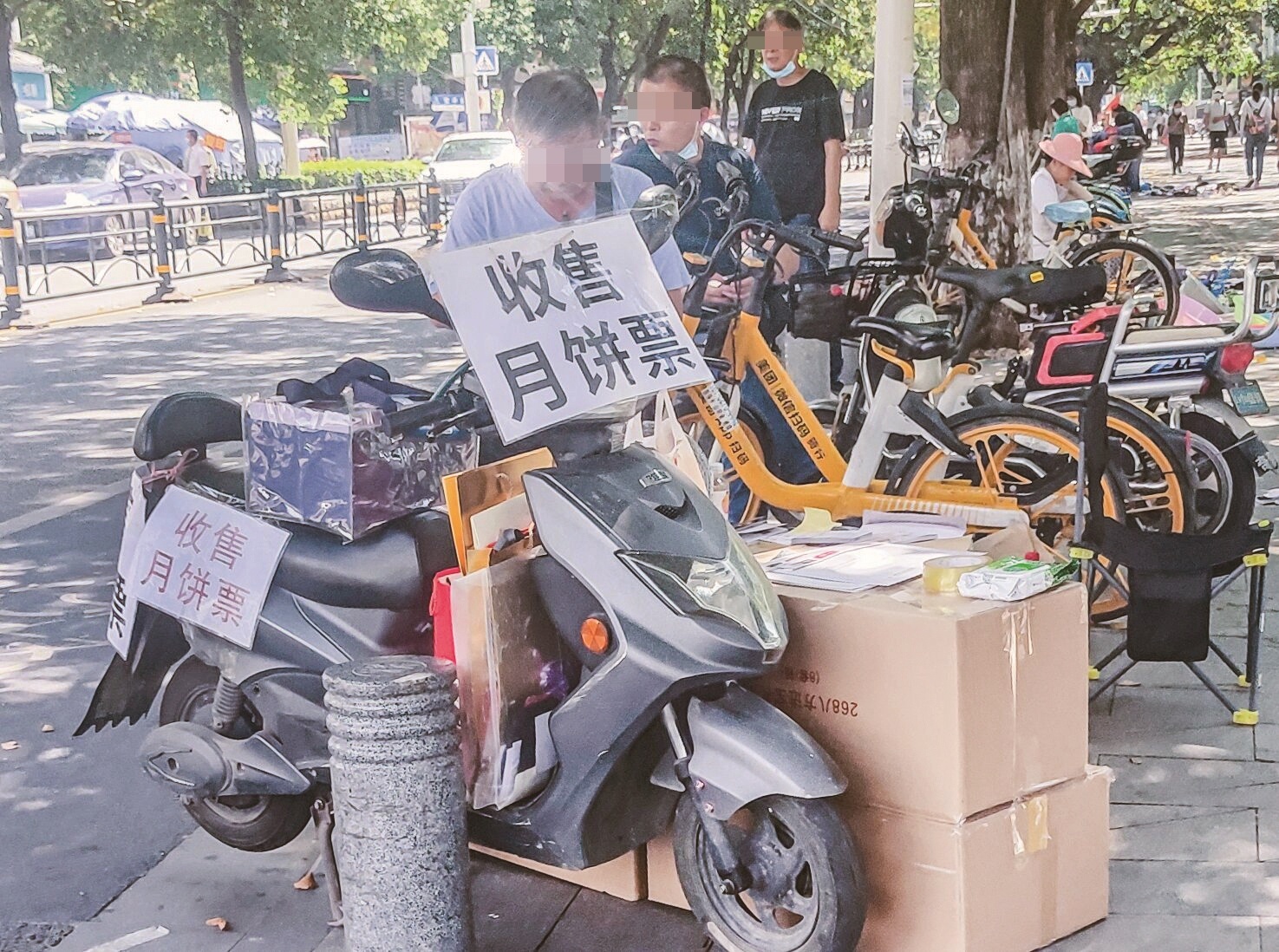 月饼券贩子重现江城街头 楚天都市报极目新闻记者李辉摄