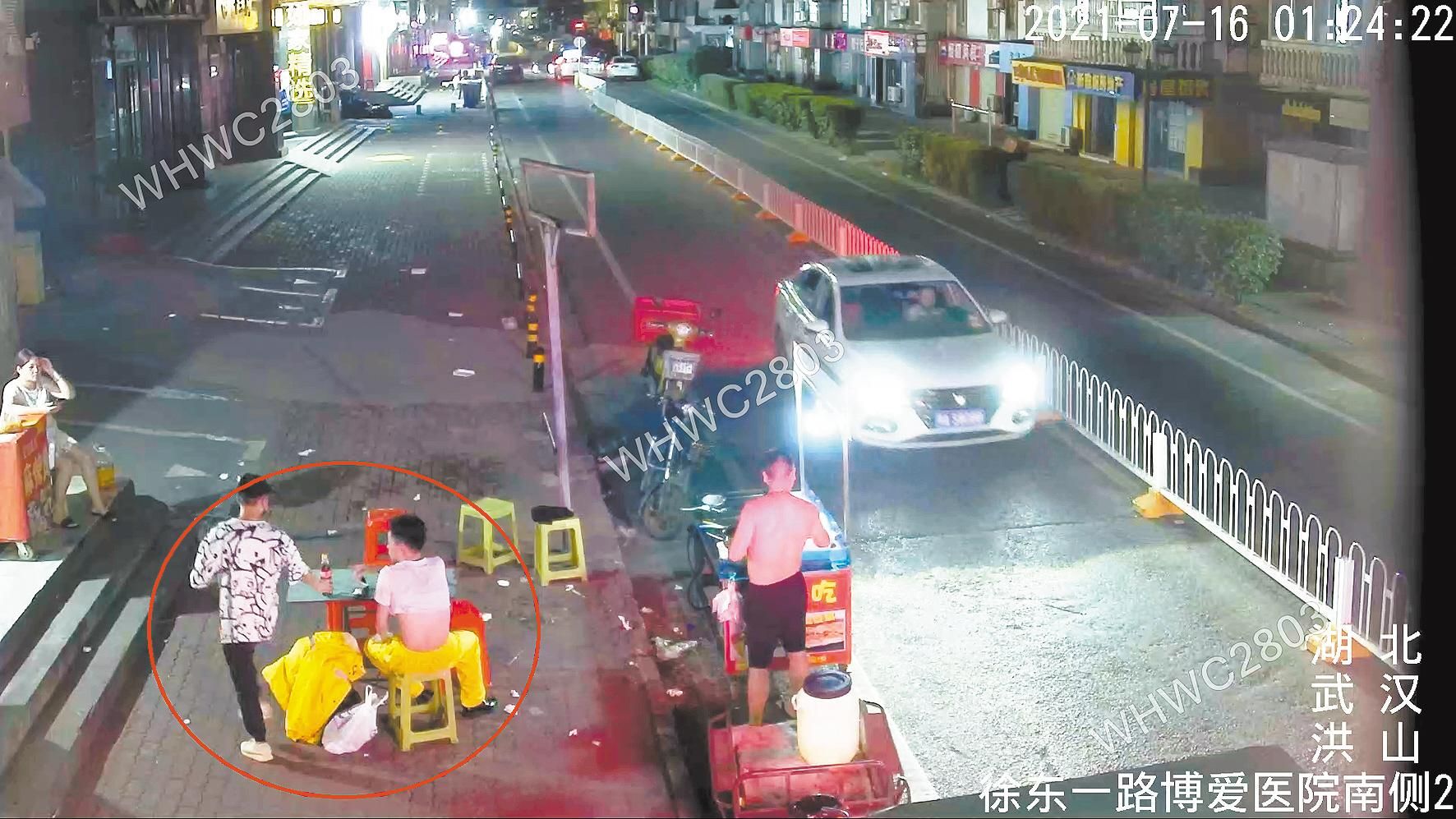 视频追踪发现,两人坐的士到徐东大街附近下车,在一处路边摊宵夜,得意忘形后脱去伪装,终于在监控视频中露出真容。宵夜后,两人来到附近一家快捷酒店入住,7月16日上午8时许走出酒店,进入徐东馨苑小区。经确认,这两名男子正是丁某、杨某。