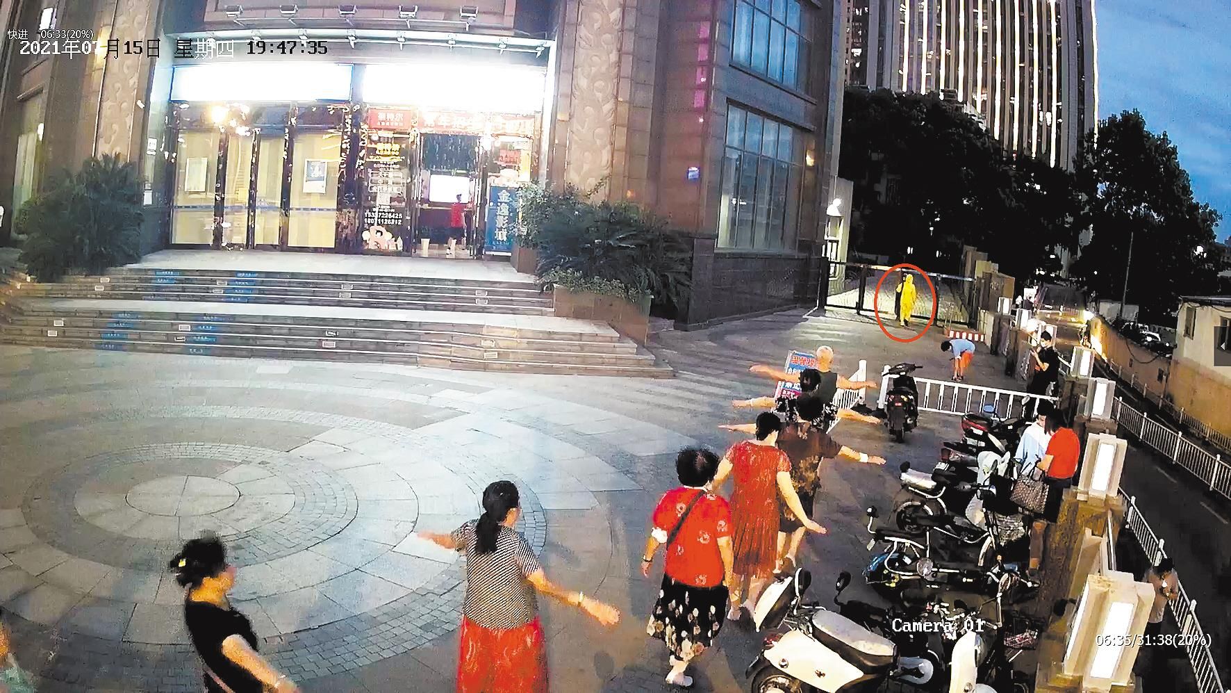 7月15日晚, 丁某(左)、杨某(右)先后进入中南国际城小区