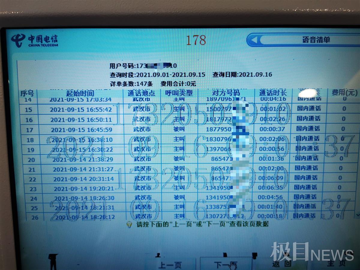 周先生短信收到的电信通知提醒:您名下的电话号码存在异常使用情况,为了确保您的个人信息安全,请您携带实物卡板和有效证件到营业厅进行实名核验,并签署《信息安全责任承诺书》后即可复通。9月16日一早,周先生赶到中国电信洪山广场营业厅,办理了相关手续,手机号码恢复了开通。他现场向记者展示的通话记录显示,从下午4是30分到6时,前后拨打了20多个电话,号码多是打给湖南、江西等外地号码。