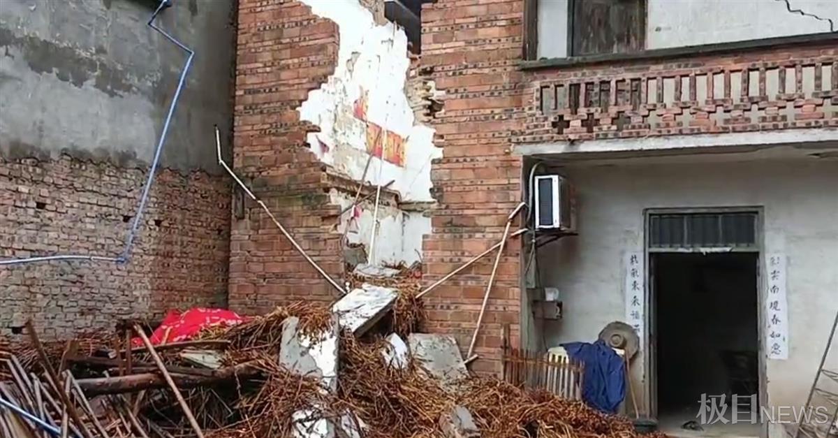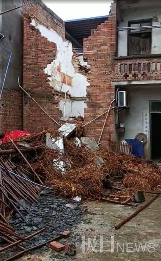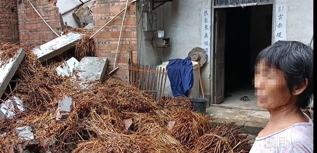 9月16日下午2时许,极目新闻记者在何婆婆家中看到,其家中一栋两层民房出现大面积垮塌的情况,家中砖块瓦片散落一地。