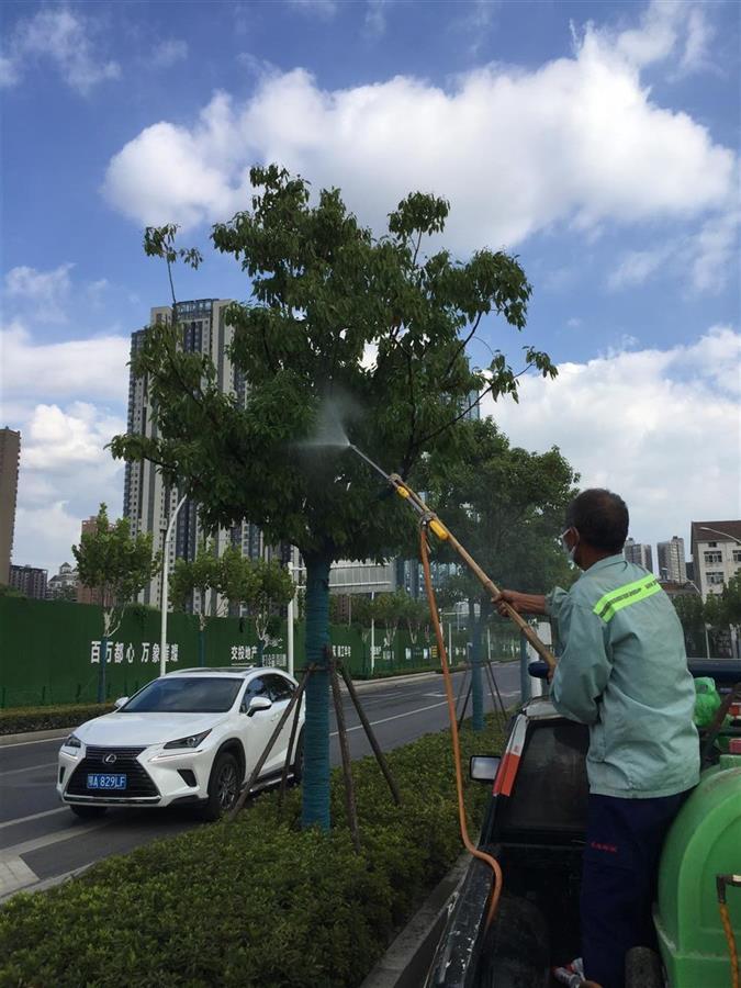 据了解,以往园林部门针对行道植物旱情,最常用的手段便是水车喷淋、打孔灌水、挂袋滴水等,这些手段都离不开大量用水来缓解植物干旱。喷施合成制剂,从而减少植物蒸腾达到缓解旱情的目的,能有效减少水的用量,这对取水困难区域的行道树和新栽的行道树抗旱是一个不错的选择。目前,此种方式抗旱还处于尝试阶段。