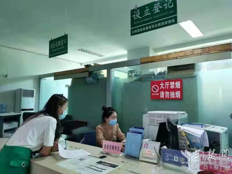 荆楚网(湖北日报网)讯(通讯员易荣波)9月8日,在大悟县政务服务中心自助服务区,城关镇居民刘哲鸿提交材料后,不到20分钟完成了新公司注册登记,并拿到营业执照。登记处的工作人员谈红还向他承诺,免费送5枚公司印章。