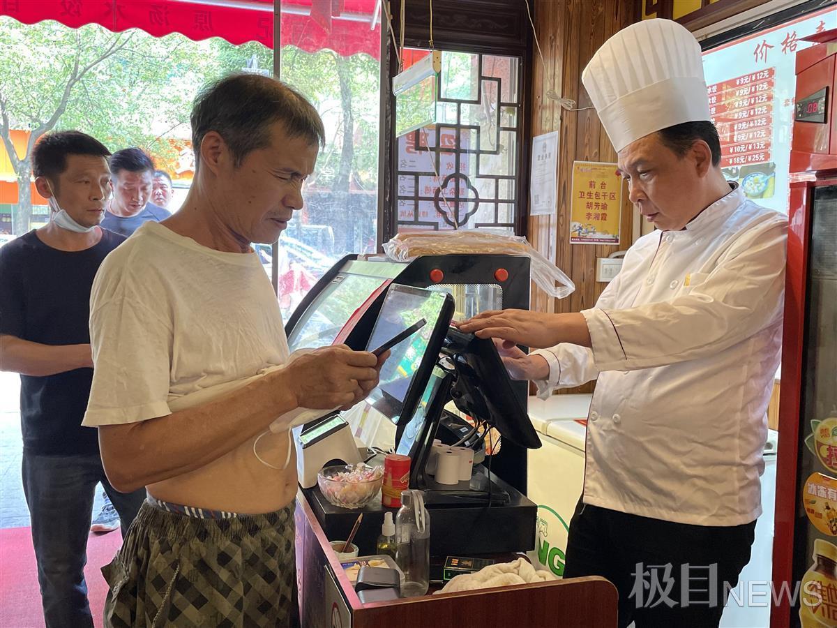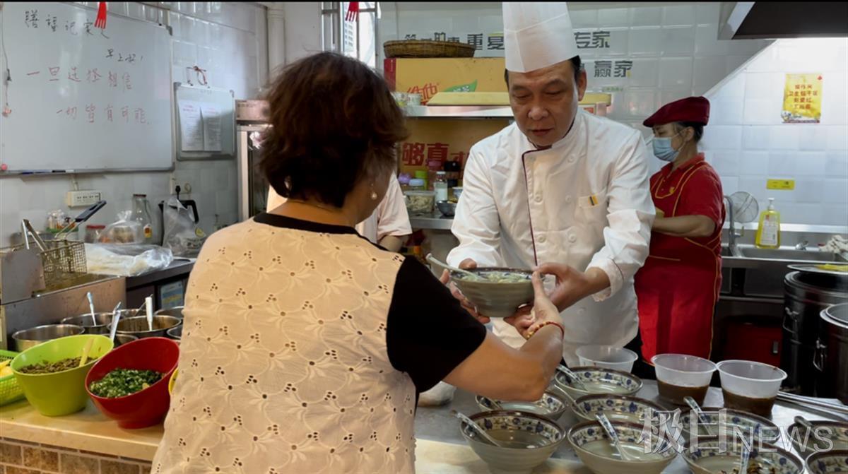 9月16日,在武汉市汉阳区五龙路的一家水饺店里,老板陶维利麻利地将装有虾米、榨菜等小料的大碗中,舀入14只皮薄馅大的馄饨,再舀入一大勺骨汤递给食客。