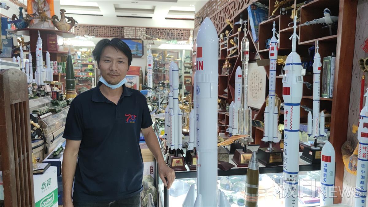 在东风航天城里卖什么呢?付先生想了想,觉得载人航天是当下的热门,他便选择卖航天纪念品。
