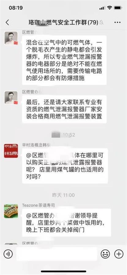 据了解,珞珈山街道综合执法中心在开展辖区燃气安全排查整治专项工作中,通过与经营户近距离交流沟通,征求意见后,建立由执法中心队员、燃管办管理员、用气经营户等共同参与的珞珈山街道燃气安全工作微信群。该群通过加强引导,注重宣传,让经营户的诉求得以更快落实解决,是服务好辖区居民,优化营商环境的有力保障。