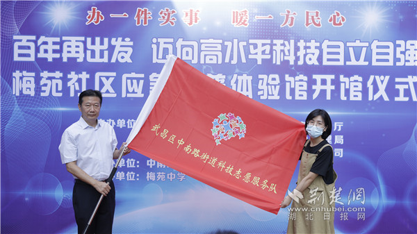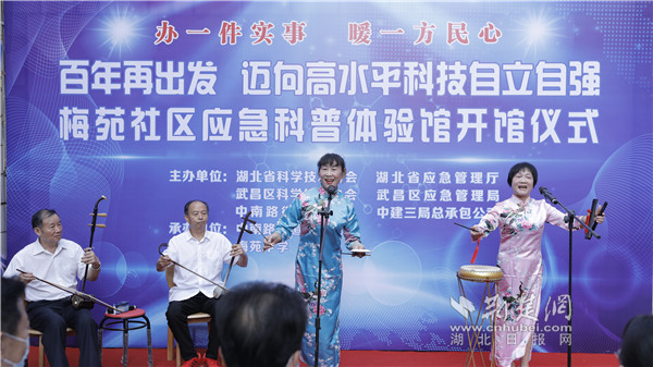 湖北省应急厅、省科协、武昌区应急局、区科协、中建三局等有关领导,梅苑中学50余名师生及社区居民出席了此次活动。住宅楼中的小广场一时间变身为新兴科技产品体验现场和异彩纷呈的活动舞台,吸引了大批居民的关注。