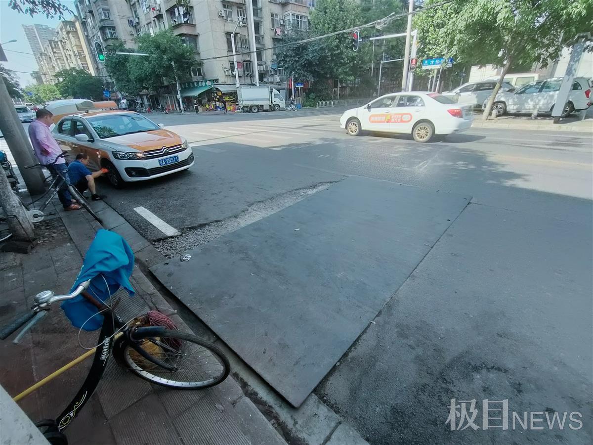 “每天从这个路口经过,就像过跷跷板,一不小心就会被绊倒。”家住武汉市武昌区四美塘附近的胡先生,向极目新闻记者反映,在才华街十字路口有一块钢板,长期铺设在马路上,存在安全隐患。