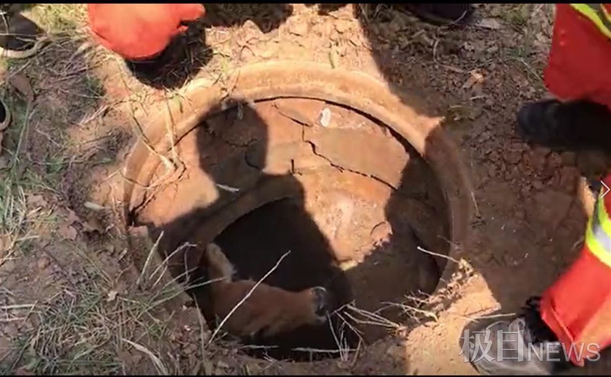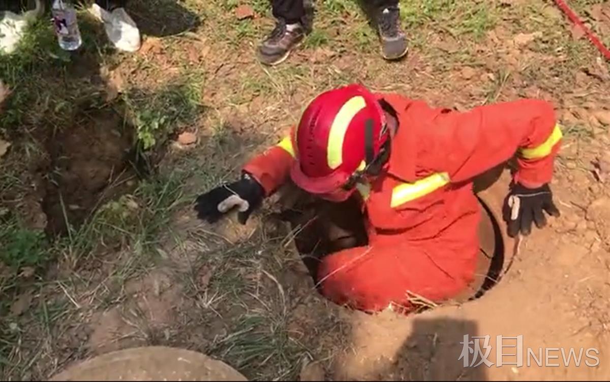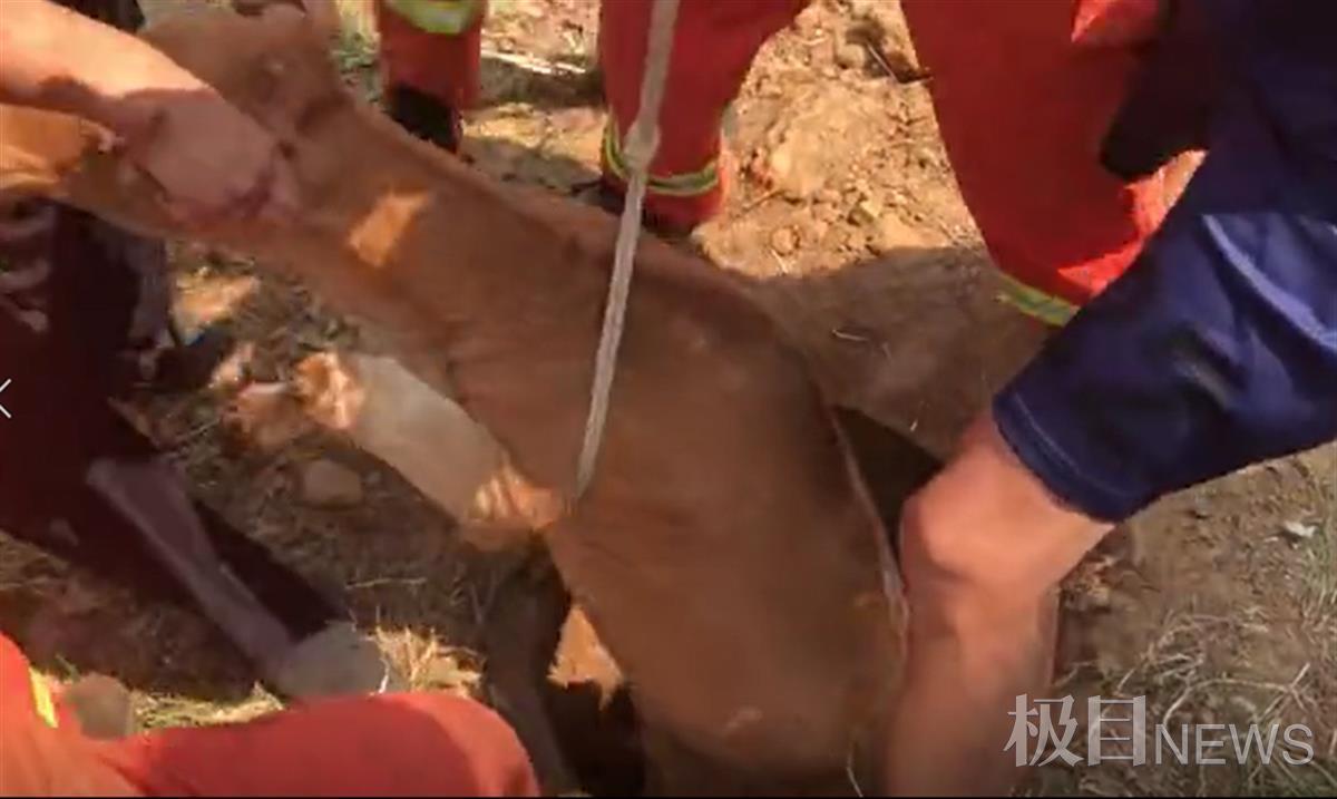 消防员现场观察,这个洞长约1米左右、宽约70厘米,洞底和排污井是连通的。消防员用铁铲将排污井上面覆盖的泥土铲掉,打开井盖发现小牛正被困在排污井中,井深2米左右,消防员迅速下到排污井,用绳子将小牛前腿部位系牢,随后众人合力将小牛拉出,从井下获救的小牛终于平安回到母亲身边。