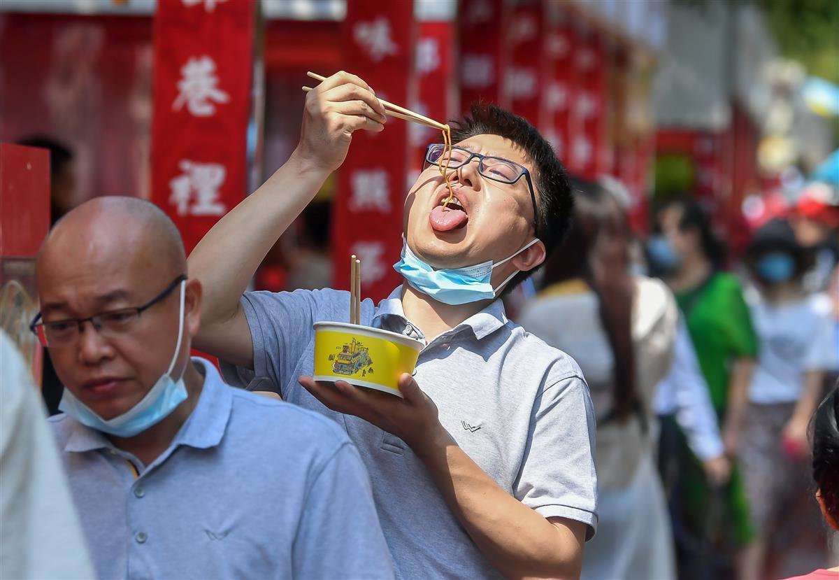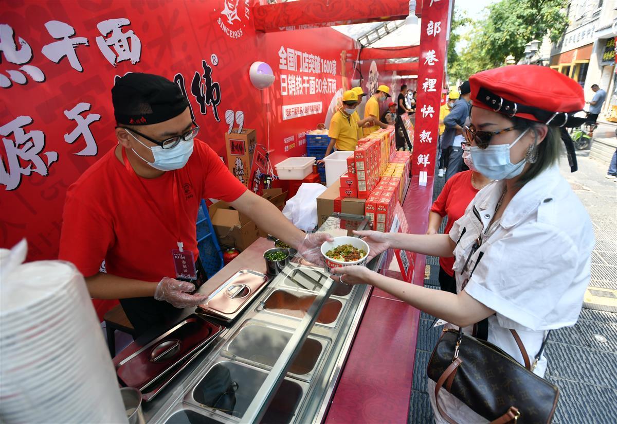 9月17日,武汉户部巷面香四溢,为期1个月的“理想之城 欢乐五畅”之武昌金秋消费季暨户部巷热干面节在户部巷大舞台正式启幕,游客从四面八方赶来,品尝武汉热干面。