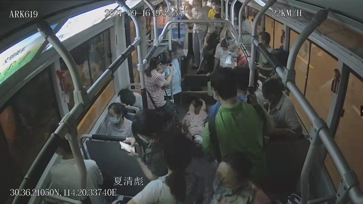 9月16日19时32分,武汉公交六公司58岁的702路司机夏清彪驾驶1508号车行至和平大道杨园路段等红灯时,坐在车厢后面靠窗户的一位年轻女乘客突然昏倒。