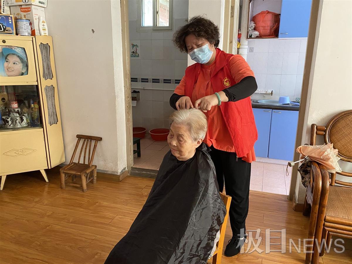 志愿者们每到一处,都与居民谈心交流,了解他们的生活情况,并为老人义务理发,预祝他们中秋快乐。