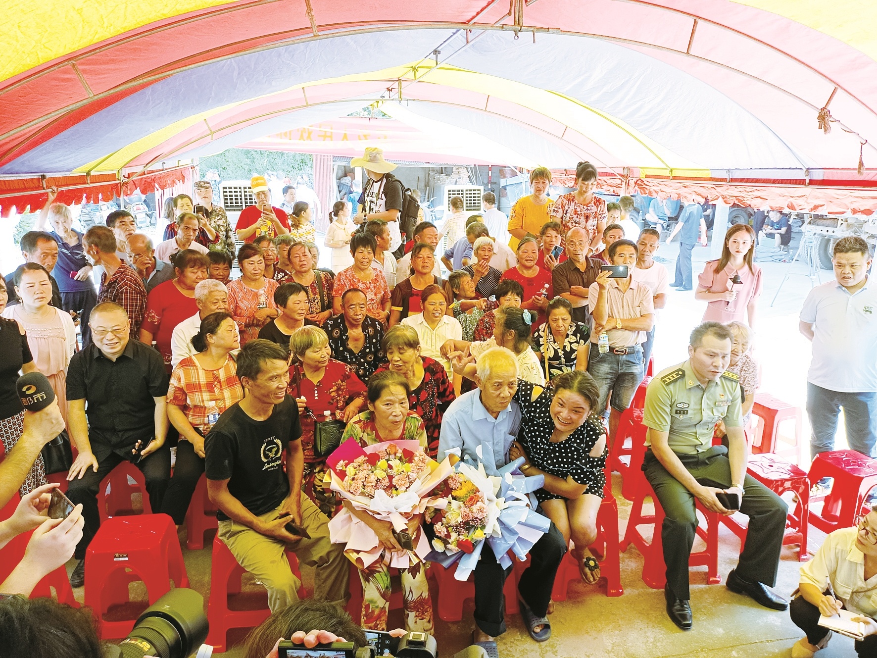 汤洪波家人和老乡看神舟十二号凯旋直播