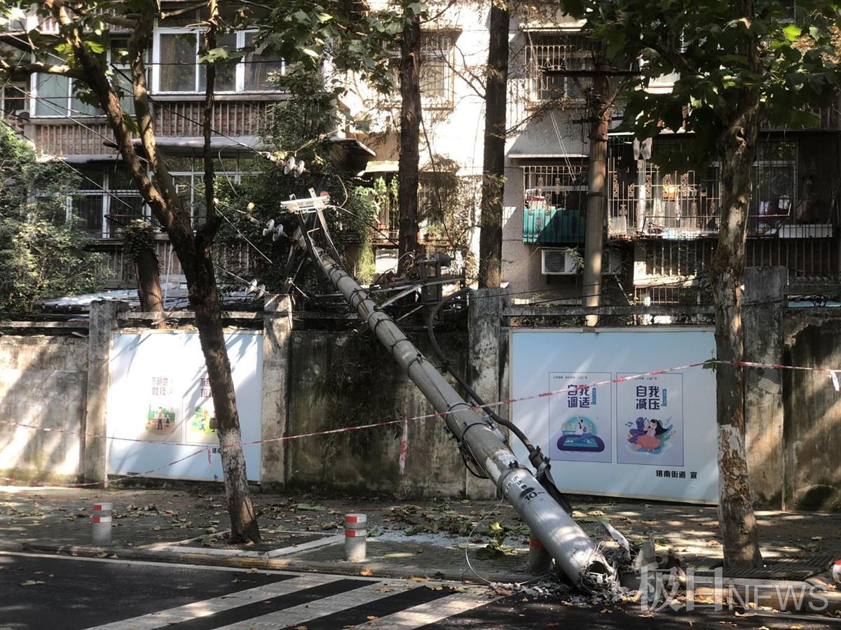 上午9时30分,极目新闻记者赶到事发现场,看到事故货车已离开现场,但被撞断的电线杆仍倒在路边的围墙上。目前,该区域已被拉起警戒线,现场有警察在此值守,提醒过往群众绕行。