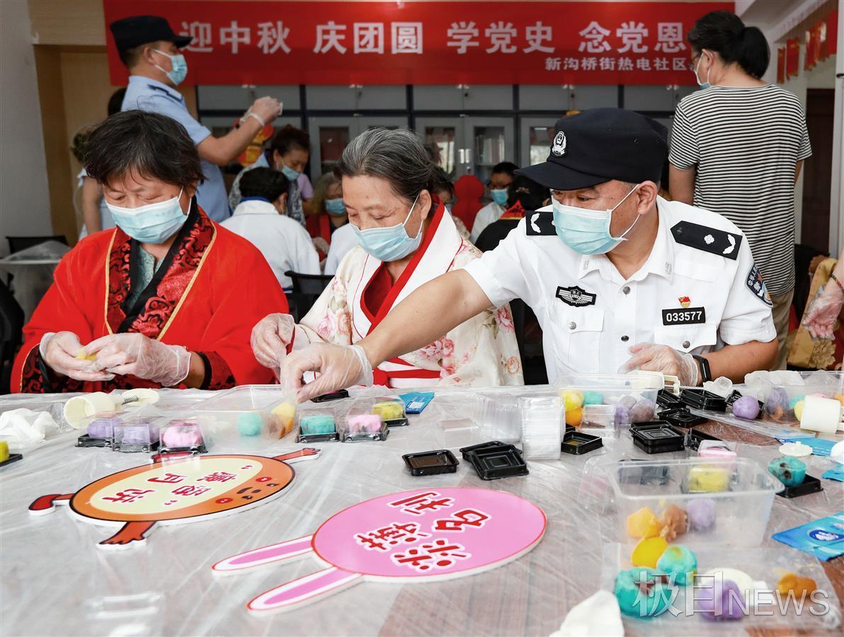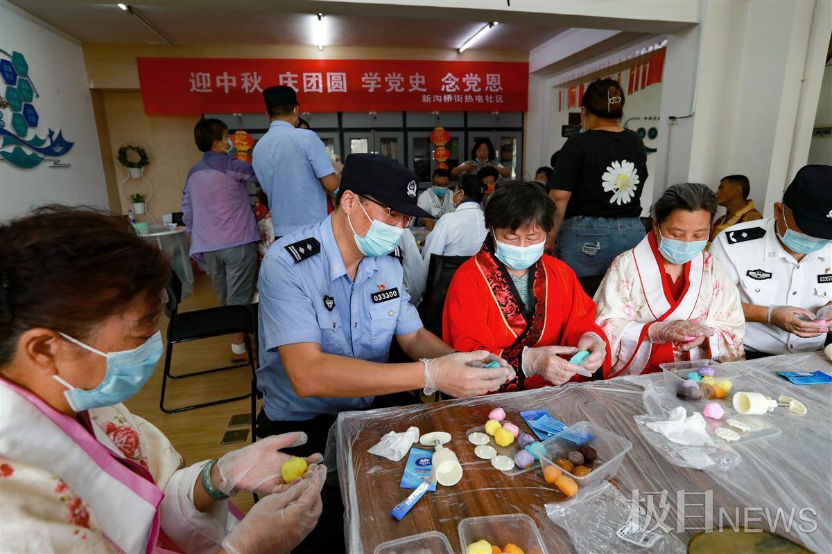 活动现场,3位英模和居民共同参加党史知识抢答,其乐融融地和身着汉服的居民群众制作月饼,一起体验中秋传统,感受文化魅力,加深警民鱼水情。