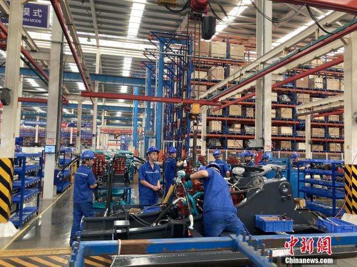 山河智能挖掘机装配流水线,工人正在忙碌。张会杰 摄
