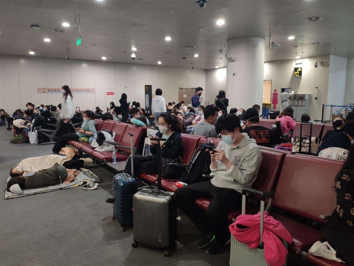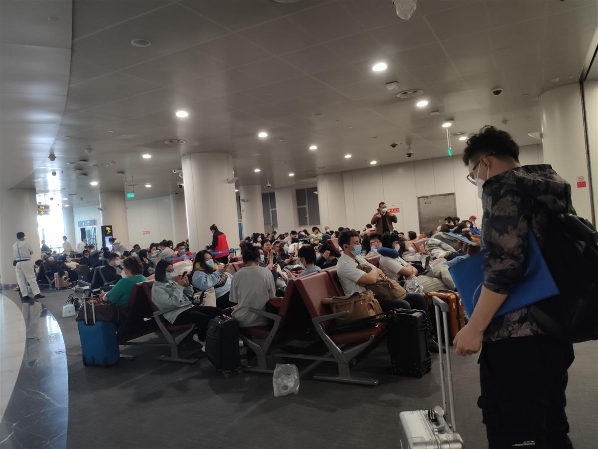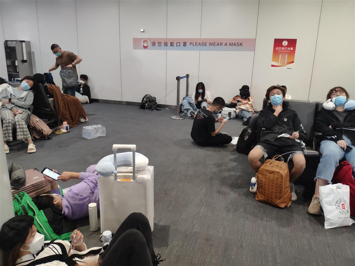 孙甜称,此趟航班的目的地是法国巴黎戴高乐机场,而她的目的地是英国,需要在巴黎转机。“在飞机上我也不敢联网跟家人说,当时很害怕出事,就把银行卡密码告诉了男朋友。”孙甜说,“现在大家都很累,我只想躺地上睡一会儿。”