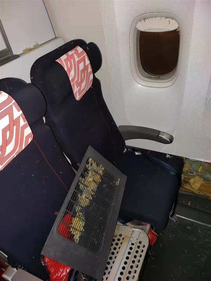 本次航班的另一位乘客孙甜(化名)也称,在飞机起飞时她就听到了一声巨响,随后感觉到座椅变热。“我当时还以为是航班的座椅有加热的功能,之后闻到一股烧焦的味道,味道很浓,这时才感觉到不对劲。”孙甜说,她还听到后舱乘客大声呼喊“着火了”“fire”,于是她转头看向后舱,“只看到有一处很亮,分不清是灯光还是火光。”
