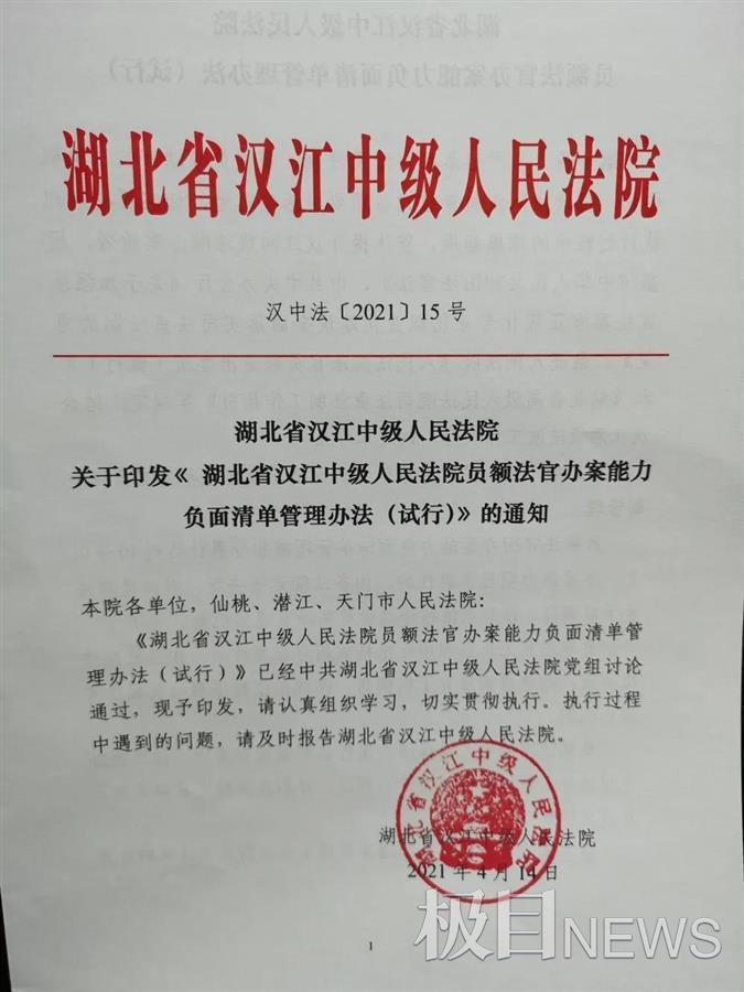 “案子结案更快了,法官办案更仔细了,对法院裁判更信服了”。这是近日来到汉江辖区各个法院办案的当事人的切身感受。案件办得好不好,群众心中有杆秤。群众感受的变化得益于汉江中院出台(以下简称《办法》)和《改判、发回重审案件监督管理规则(试行)》(以下简称《规则》)(《办法》和《规则》均有十项条款,被称为汉江审判管理“双十制度”)等工作制度,从源头上促进审判质量和效率的提高,是推进司法责任制落地落实的首创之举。