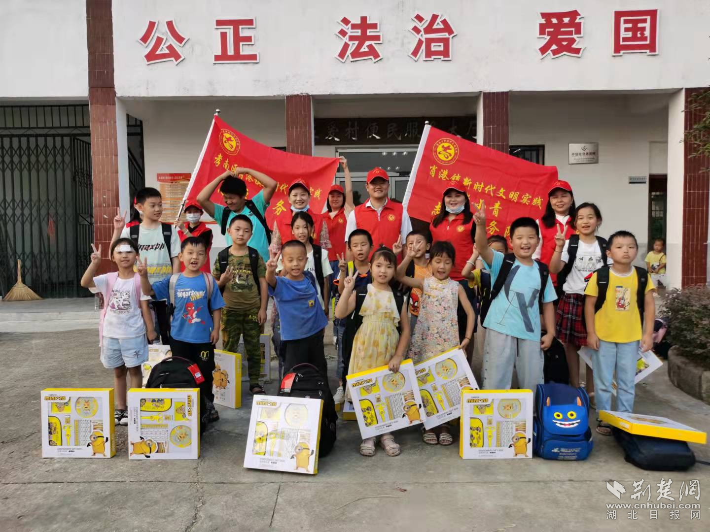 荆楚网(湖北日报网)讯(通讯员万喆)“妈妈,今天镇上的叔叔阿姨到咱们村来了,你看,还给我们送来了书包、台灯和文具大礼包,我们都可高兴了。”来自孝南区肖港镇五爱村的余思宁小朋友正用爷爷的手机给远在深圳的妈妈打视频电话。9月17日,在中秋、国庆双节即将来临之际,肖港镇新时代文明实践所组织团委孝小青志愿服务队、妇联巾帼志愿服务队10余名志愿者来到五爱村委会,开展了一场主题为“和美肖港,共度中秋”的文明实践活动,为五爱总支的16名留守儿童和困难学生送去节日的祝福。