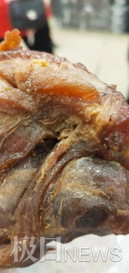 在正规超市里面的卤菜摊购买了做活动的“特价酱牛肉”,随后却在“牛肉”上发现了几根猪毛,进而发现,这“特价酱牛肉”竟然是猪肉假冒的。