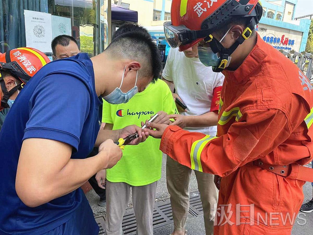 武汉消防提醒,如果手指被铁环、戒指等物体卡住无法取出时,切勿生拉硬拽,可尝试先将手放在冷水中浸泡,或者准备一些冰块摩擦被卡的手指,然后用润滑油、肥皂水涂抹手指并轻轻转动。如果自行尝试后未能成功,且手指发生肿胀,应及时向消防部门求助。