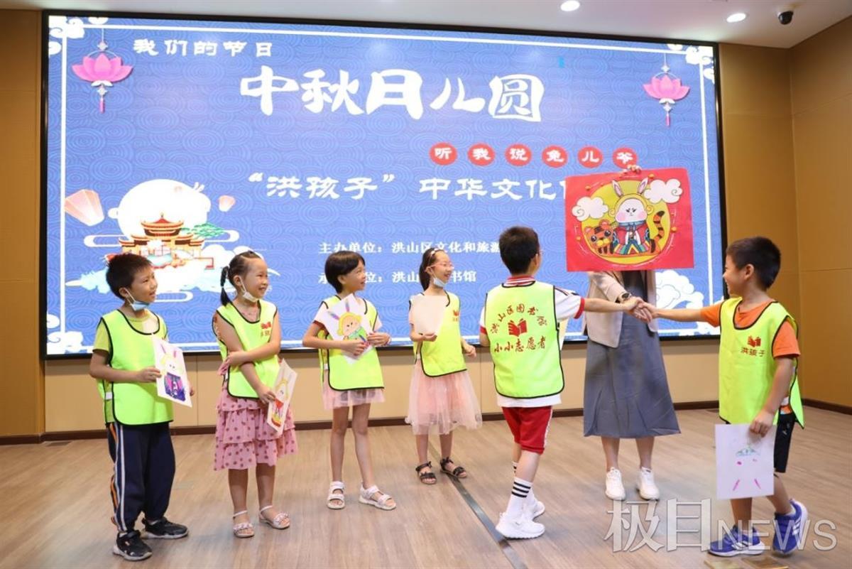 “如果兔儿爷来武汉旅游,你们要带他去哪里玩?”“黄鹤楼!”“东湖!”“户部巷!”……9月19日上午,在洪山区图书馆举办的《中秋月儿圆 听我说兔爷》“洪孩子”传承华中华文化主题活动,“洪孩子”们积极踊跃参与。