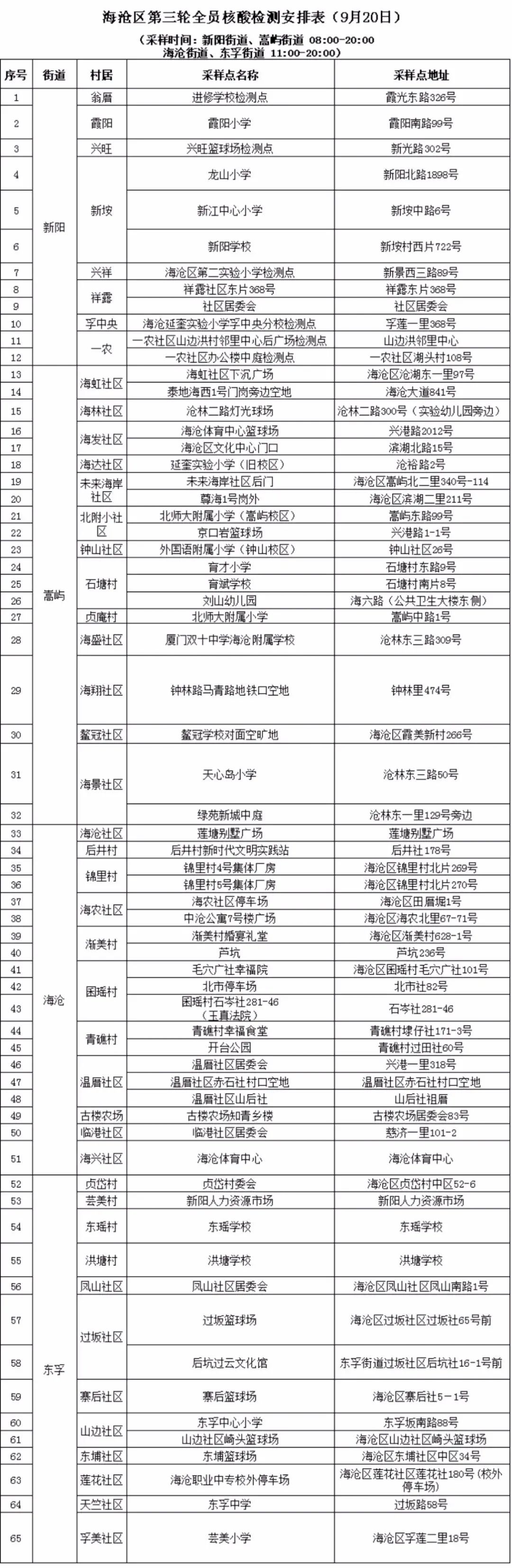 附件:海沧区第三轮全员核酸检测安排表