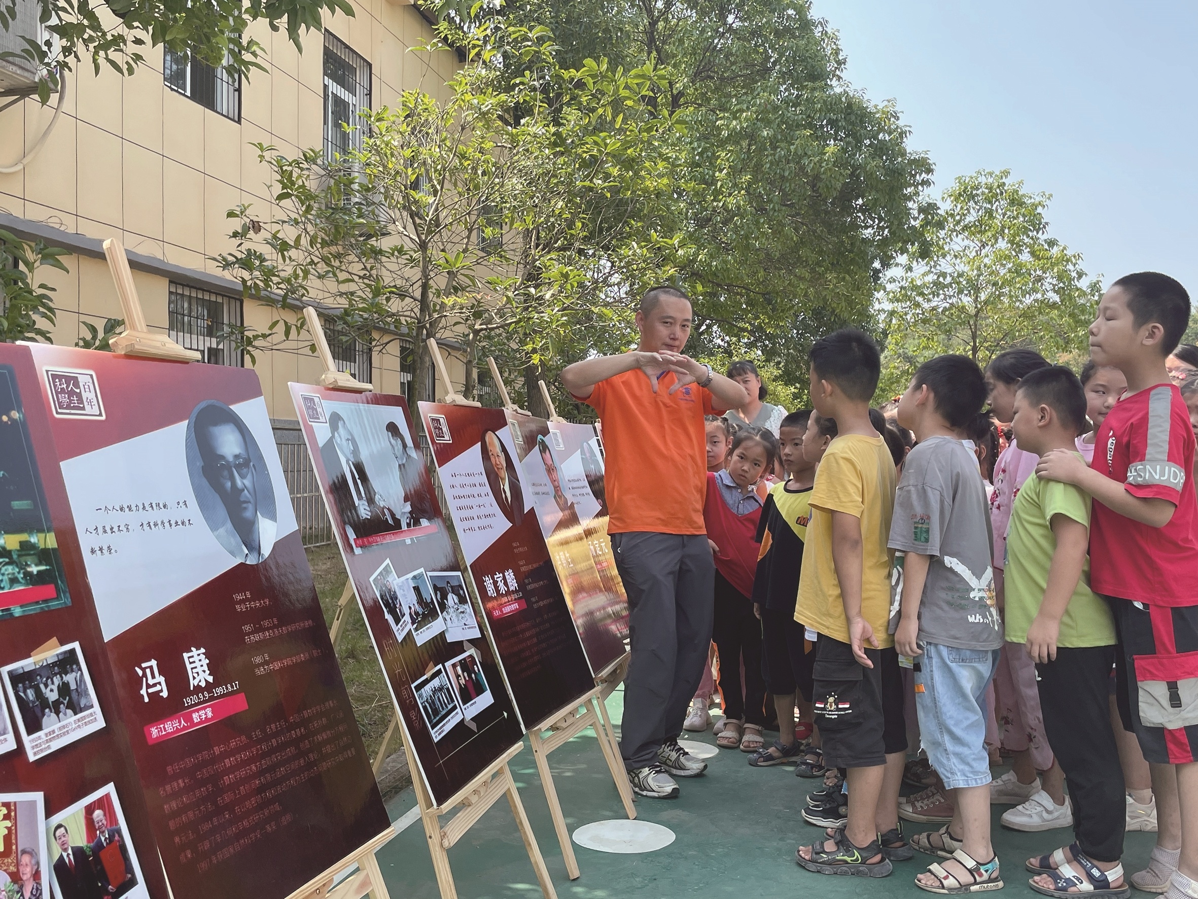 《科学人生·百年——院士风采展》的小型展览吸引了孩子们的目光