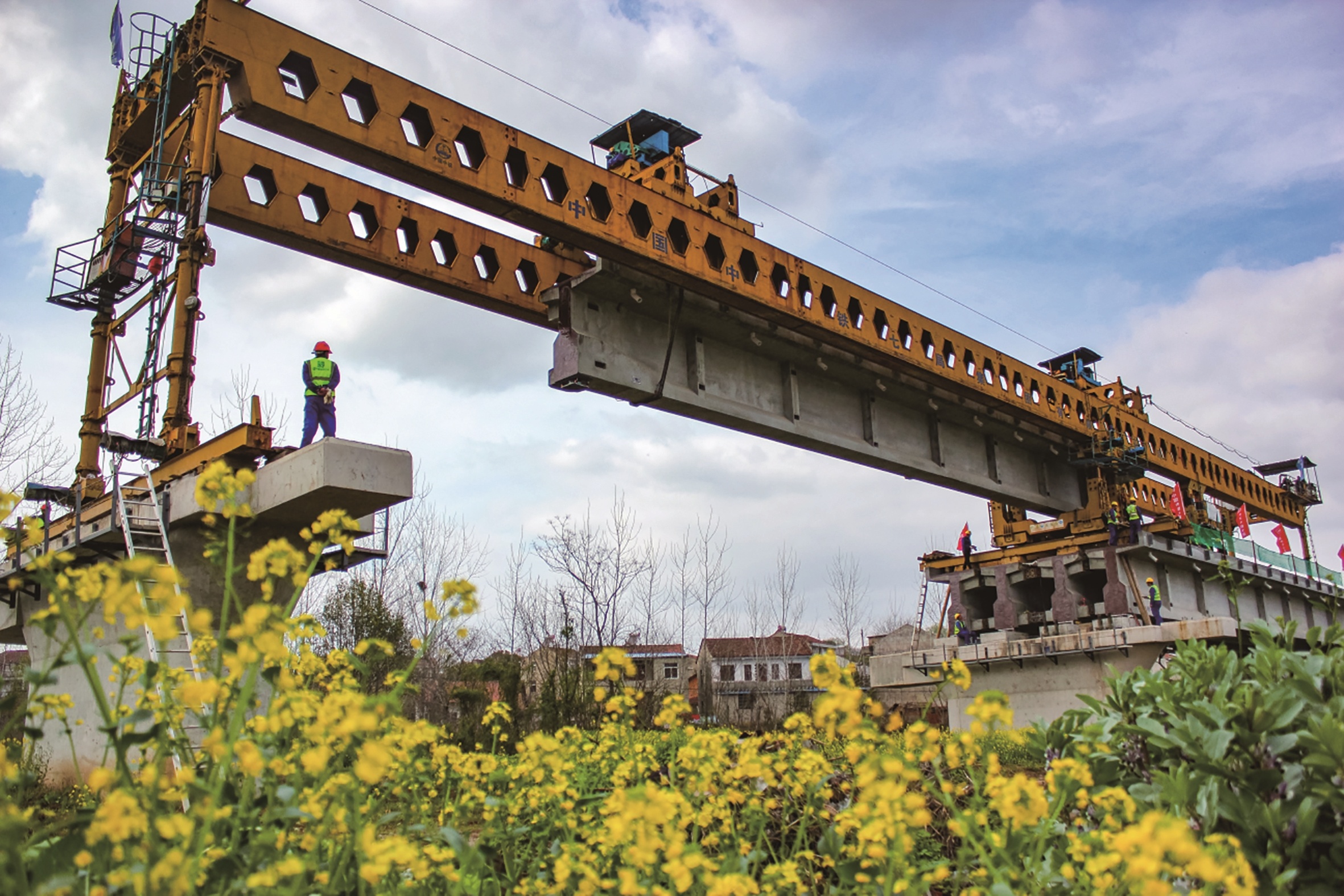 由中铁七局负责施工的新港铁路3标全长22.767公里,施工内容包含特大桥5座,其中倒水河特大桥为香炉山至林四房段控制性工程之一,桥梁全长7.278公里。中秋假期,来自各地的数百名建设者坚守岗位,昼夜施工,争分夺秒确保项目稳步推进。