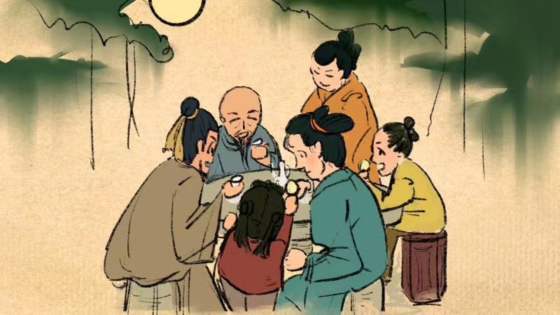 “玩月”。明清时期,中秋之月又被赋予了“圆”的寓意,祈盼“团圆”成为中秋节的主题。