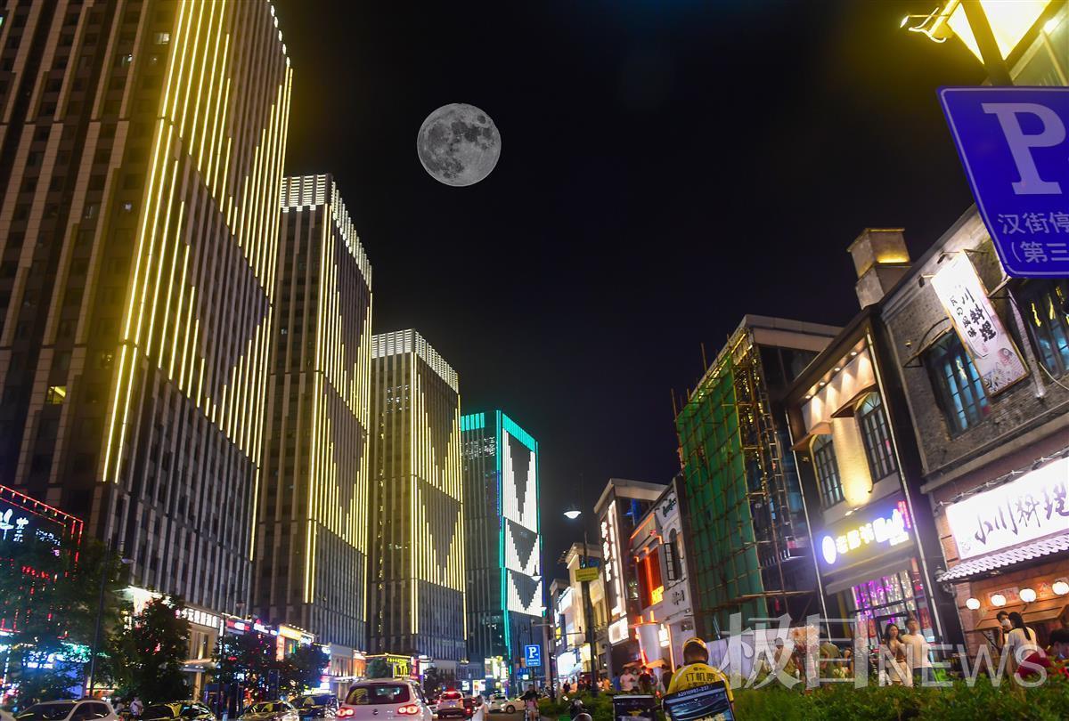 汉街上空、楚河烟霞桥、沙湖公园…… 记者一路“追赶”月亮,来一起看看江城月色吧。