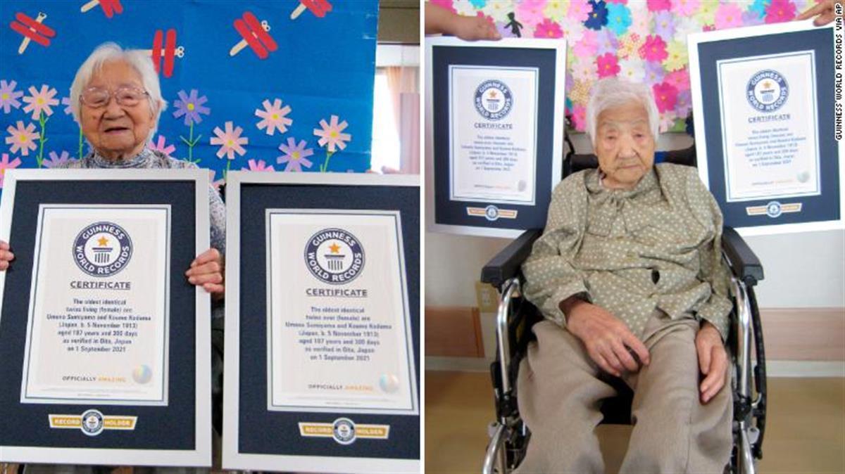 据CNN报道,日本一对同卵双胞胎成为世界上最长寿的双胞胎,获得了吉尼斯世界纪录的认证,她们俩今年已经107岁了。