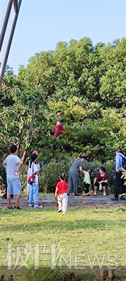 杜先生介绍,这段视频拍摄于9月20日下午4点左右,当时他带着小孩正在园博园东门附近的儿童乐园玩耍,碰巧看到不远处有人在喧闹,仔细一看原来是有人在打板栗、摘柚子。